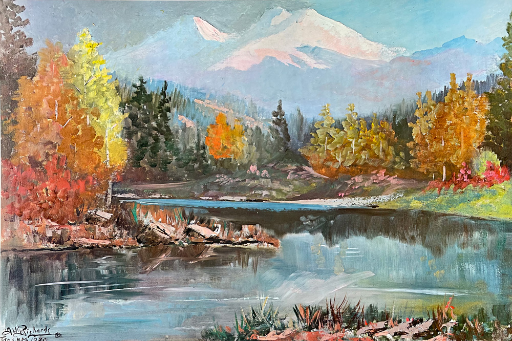 This image, originally in oils, of Cabresto Lake is a gorgeous fall scene rich with aquas, greens, and the yellow/golds of autumn foliage. The late artist’s estate has generously donated these prints to support our work.